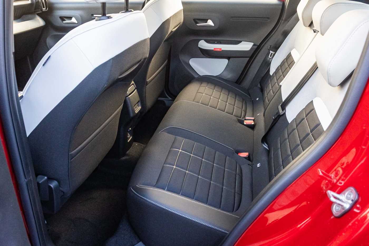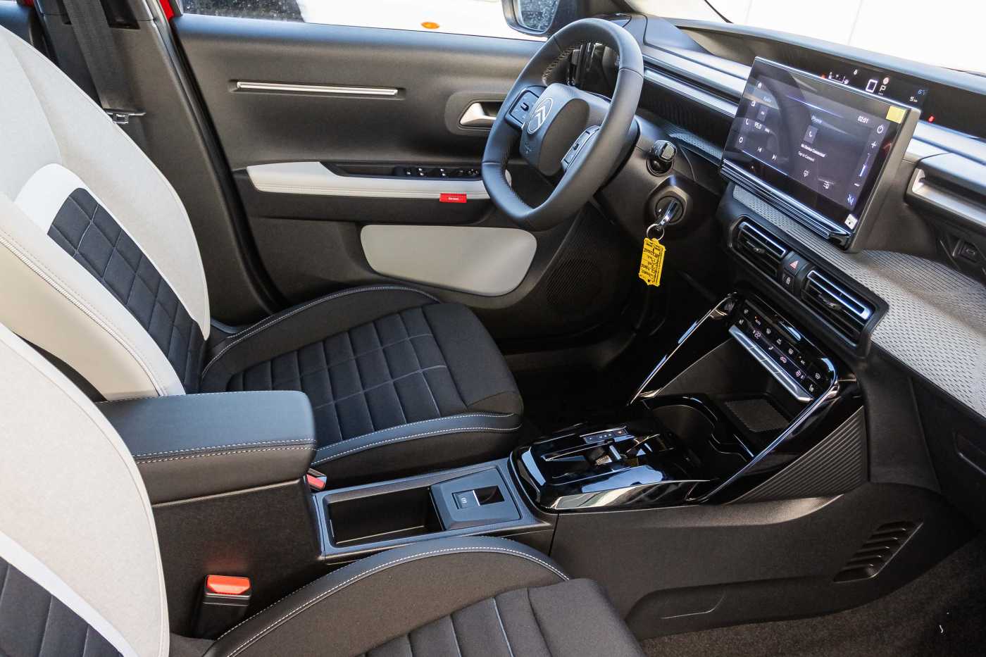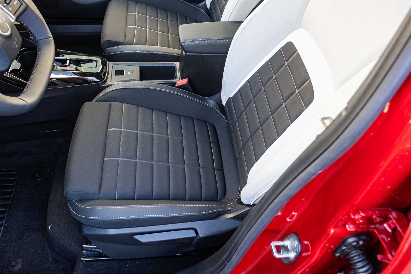 - Advanced Comfort-Sitze mit hochdichtem Schaumstoff und extra dicker Polsterung für optimalen Komfort bei jeder Fahrt, Stoffsitze in Schwarz und Grau und Kunstleder Hellgrau, Dekor in Siderite auf der vorderen Türverkleidung und am Armaturenbrett, Armlehnen an den Vorder- und Hintertüren mit Stoffbezug und Happy Tags- Zierstreifen, Sofa-Armaturenbrett mit Stoffbezug