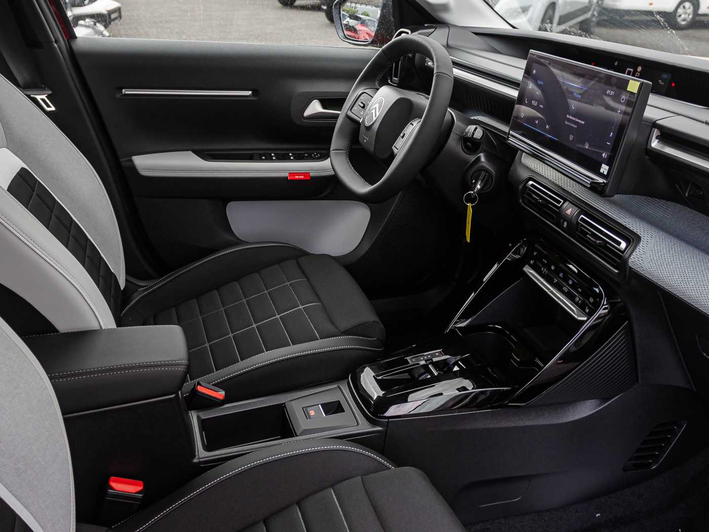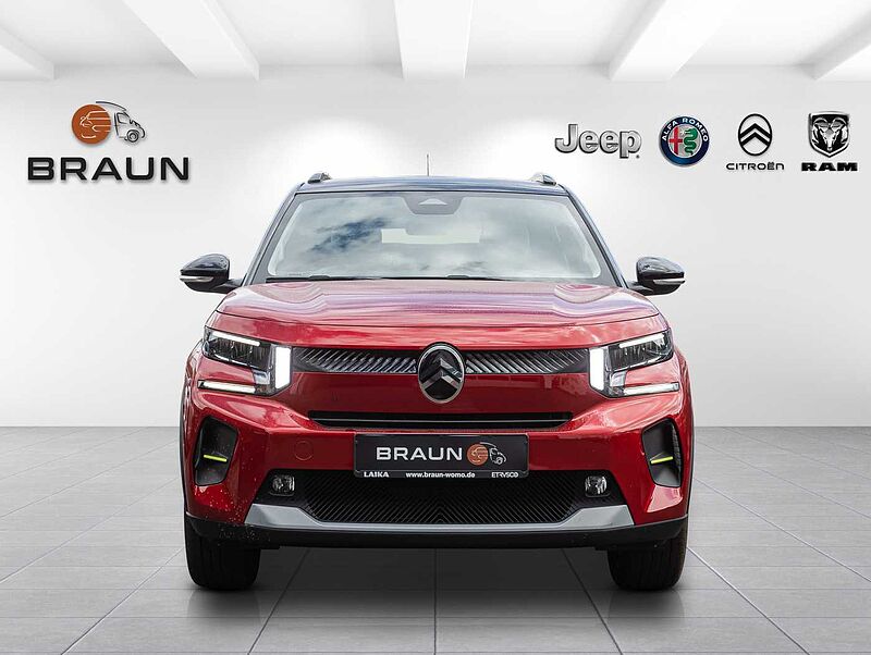Citroën ë-C3 Elektromotor 113 Standard-Range Plus Deutsches Fahrzeug vom Citroen Vertragshändler. Metallic Lackierung Elixir Rot mit Dach in Wagenfarbe Ambiente METROPOLITAN GREY inkl. Winter Paket Plus: Winter Paket Plus- Klimaautomatik- Sitzheizung für die vorderen Sitze- Beheizbares Lenkrad- Beheizbare Frontscheibe- Nebelscheinwerfer- Elektrische Fensterheber vorn und hinten • 17-Zoll-Stahlfelgen mit Radzierkappen Azurite • Außenspiegel elektrisch anklapp-, einstell- und beheizbar • Mittelarmlehne zwischen den vorderen Sitzen (nur für Elektro/Hybrid) • Dachreling • Fahrersitz in der Höhe verstellbar • Farbclips in Weiß, Gelb oder Rot • Frontscheibenwischer mit Regensensor • Innenspiegel automatisch abblendend • LED-Scheinwerfer vorne • Lenkrad mit Spaltleder bezogen • MyCitroën Play Plus: - 10,25'-Touchscreen - Digitaler Radioempfang DAB & DAB+ - kabellos Android Auto™ und Apple CarPlay™ - Bluetooth®-Freisprecheinrichtung - Lenkradfernbedienung • Rücksitzbanklehne geteilt (60/40) umklappbar • Unterbodenstoßfänger vorne und hinten • USB-Typ C vorne. vorne (aufladbar/Datenübertragung) • USB Typ C hinten (aufladbar) • 12 Volt Anschluss in der Mittelkonsole • 6 Airbags • Automatische Fahrlichteinschaltung • Citroën Advanced Comfort Federung • Einparkhilfe hinten • Elektrischer Fensterheber vorn • LED-Tagfahrlicht • Geschwindigkeitsregler und -begrenzer • Heckspoilerlippe • Citroën Head-up-Display • Isofix-Kindersitzbefestigungen hinten (außer Mitte) • Klimaanlage • Sicherheitspaket - Aktiver Notbremsassistent - Aktiver Spurhalteassistent - Verkehrszeichenerkennung - Aufmerksamkeitsassistent • Verbreiterung der Radkästen und Seitenschweller Ganz gleich, ob Sie einen Neu-, Gebraucht-, Vorführwagen erwerben möchten. Wir liefern Ihnen Ihr Traumfahrzeug bis vor die Haustür - und das Ganze deutschlandweit. So macht der Autokauf doppelt Spaß, und der Transport bzw. Die Lieferung Ihres Fahrzeugs ist in guten Händen. Zwischenverkauf und Irrtümer für dieses Angebot sind ausdrücklich vorbehalten. Ausschlaggebend sind einzig und allein die Vereinbarungen in der Auftragsbestätigung oder im Kaufvertrag.