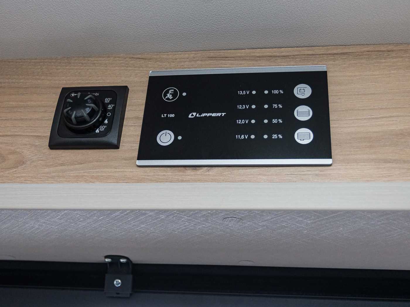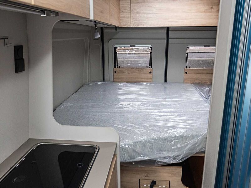 Elektro Paket (Vorzeltleuchte, Zusätzliche Doppel-USB-Steckdose im Bug links, 12-V-Steckdose im Heckbereich links unten, 230-V-Steckdose im Oberschrank Bug links (Sitzgruppe), Indirekte Beleuchtung, LED-Lichtröhre in der Küche, Vorbereitung Solarmodule)