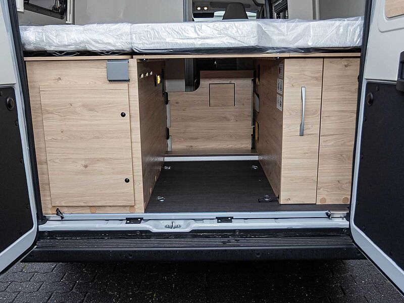 Komfort Paket (600 DK / DS / DR) (Fenster mit Fliegenschutz und Verdunklungsrollo im Heck links, Innovativer Auszug unter dem Heckbett, Drehplatte für Tischerweiterung)