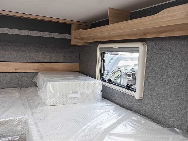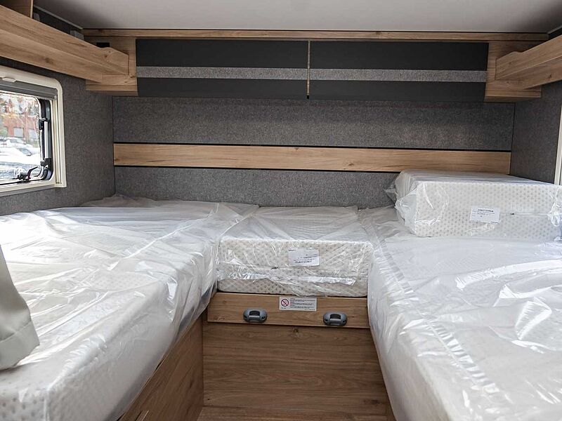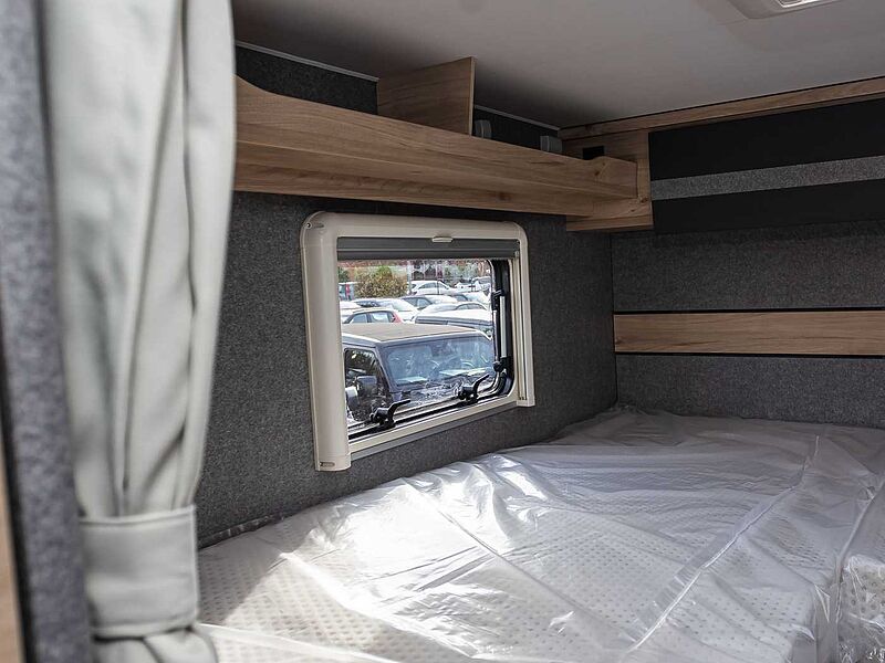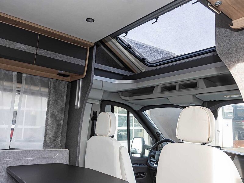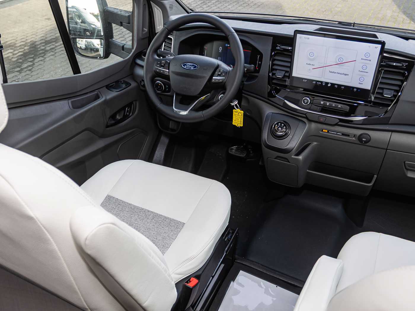 Active Paket T 7055 EB (Ford Transit Light Tiefrahmen (3.500 kg), TDCi EcoBlue (2,0 l / 121 kW / 165 PS) Heavy Duty, 8-Gang Automatikgetriebe, Außenfarbe Fahrerhaus Schwarz Metallic (Agate Black Metallic), Alufelge Ford 16 Zoll, schwarz, Klimaanlage automatisch inkl. Staub- und Pollenfilter, Außenspiegel elektrisch einstellbar und beheizbar, Ausstellfenster in der T-Haube, Verdunklungsjalousien im Fahrerhaus, Panorama-Dachhaube 70 x 50 cm im Wohnraum, Stauraum-Türe links, Light Moments: Indirekte Ambientebeleuchtung über den Dachstauschränken, Light Moments: Indirekte Wandflächen-Ambientebeleuchtung, Doppelverglaste Rahmenfenster mit Verdunklung & Mückenschutz, Textilleder-Wohnwelt Heron inkl. Fahrer- und Beifahrer-Sitzbezug, Active Außendesign (Heckleuchtenträger mit schwarzem Diffusor, erweiterte Beklebung), Bettumbau Einzelbetten zu Doppelbett, Gemütliche L-Sitzgruppe mit freistehendem, absenkbarem Tischfuß und 2 integrierte 3-Punkt-Gurte)