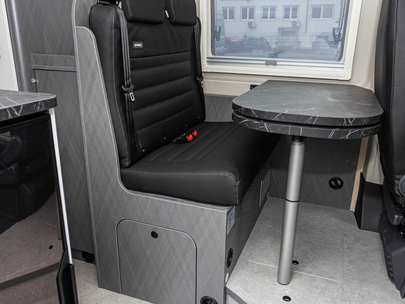 • Fahrer-|Beifahrersitz drehbar in Wohnraumstoff • Höhen- und Neigungsverstellung für Fahrer- und Beifahrersitz