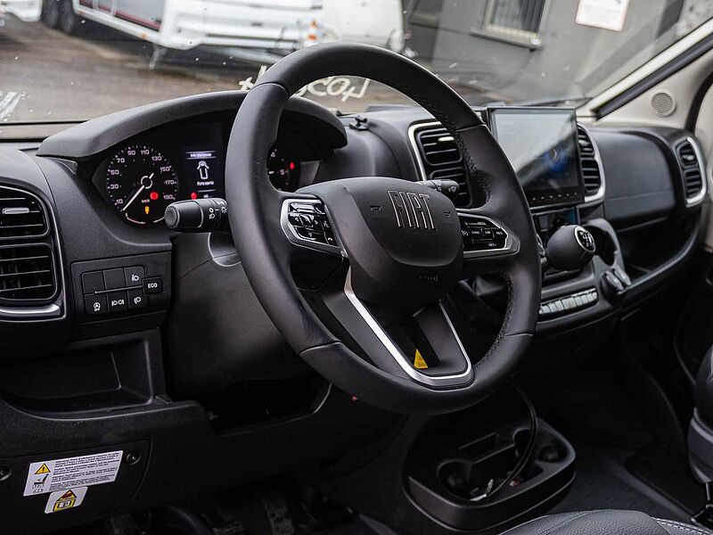 • Fiat Ducato 2,2 l Multi-Jet mit 103 kW | 140 PS, Abgasnorm EURO 6d • Frontantrieb • ABS (Antiblockiersystem), EBD (Elektronsiche Bremskraftverteilung), ESP (elektronisches Stabilitäts-Programm) • ESC (elektronische Stabilitätskontrolle) inkl. ASR (Antischlupfregelung) und Hillholder (Berganfahrassistent) • CWA (Seitenwindassistent), TSC (Anhängerstabilitätskontrolle) und PCB (Multikollisionsbremse) • Tempomat • Start & Stop Funktion • Scheibenbremsen, Hinter- und VorderachsStabilisator, Umluftheizung, Drehzahlmesser • Servolenkung, höhenverstellbare Scheinwerfer, Wegfahrsperre, 3-Punkt-Sicherheitsgurt mit Gurtwarner (für Pilotensitze) • Außenspiegel, elektrisch verstellbar und beheizbar • Elektrische Fensterheber und Zentralverriegelung im Fahrerhaus • Tagfahrlicht • Stahlfelgen 16” inkl. Radzierblenden • Fahrer- und Beifahrerairbag • Klimaanlage Fahrerhaus manuell • Bordcomputer inkl. Außentemperaturanzeige • Getränkehalter in der Mittelkonsole • USB-Steckdose (doppelt) • Pannen-Set Fix & Go Kit