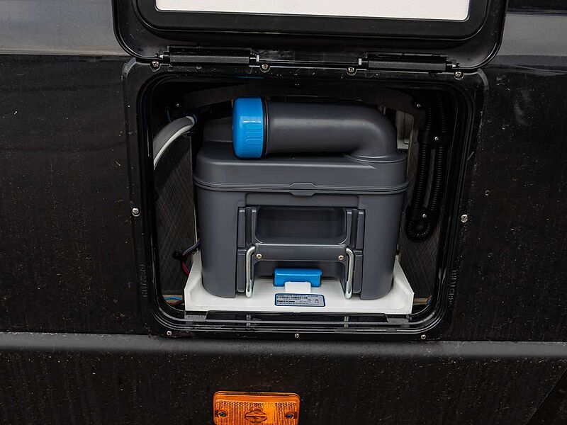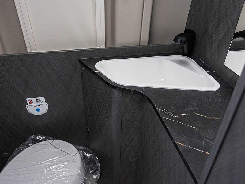 • Festwaschbecken • Duschausstattung • Großzügige Abstellflächen • Kassetten-Toilette • Eingelassene LED-Spots im Badezimmer • Dachhaube mit integriertem Insektenschutzrollo