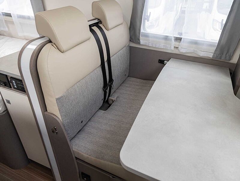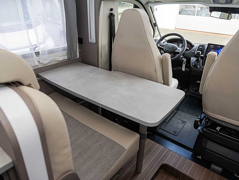 • Ergonomisch geformte Polster für mehr Sitzkomfort • Gemütliche L-Sitzgruppe mit freistehendem, dreh- und schwenkbaren Tisch (T 7300 SB und T 7400 SB) • Gemütliche Lounge-Sitzgruppe mit freistehendem Tisch zum Abklappen (T 7400 SBC | QBC) • Tischplattenverlängerung • Hochwertige Matratzen für erhöhten Liegekomfort • Matratzenbezüge abnehmbar und waschbar • Bettenumbau Einzelbett zu Doppelbett • Hochwertige Heckbettapplikation mit LED-Beleuchtung • Holzlattenrost in allen Festbetten für erhöhten Liegekomfort • Großzügige Stauräume und Ablagemöglichkeiten • Dachstauschränke mit Soft-Close Schließsystem • Möbeldekor Tela Sand and White • Fußboden Nautic Breeze