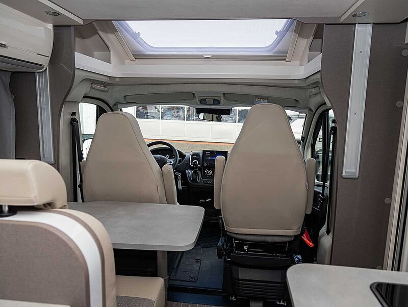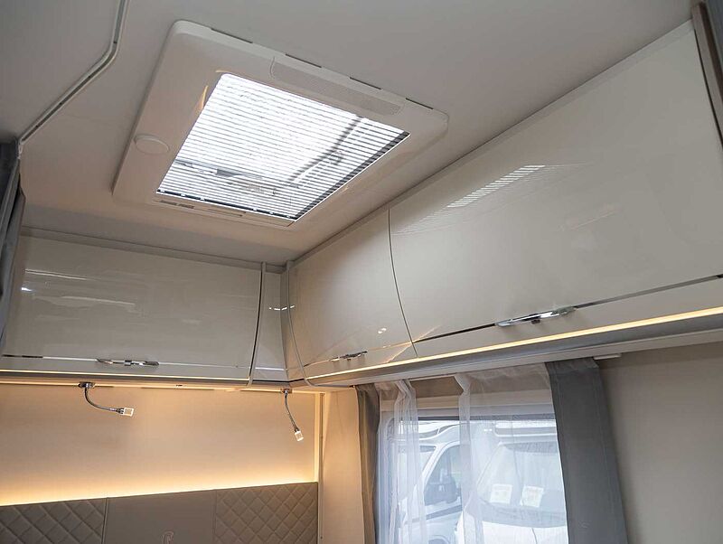 • Formschöner Heckleuchtenträger dreiteilig mit integrierten Leuchten • Fahrerhaus-Vorhang • Panoramadachhaube über Sitzgruppe • Klarglas-Dachhaube 40x40 • Ausstellfenster doppeltverglast mit Verdunkelungsrollo und Fliegenschutz (ausgenommen Toilettenraumfenster) • Breite Aufbautür mit Fenster sowie einer ergonomischen Griffposition innen und außen • Fliegengittertür • Coupé Einstieg • Großzügige Heckgarage mit Rahmenabsenkung, Verzurrösen und Innenbeleuchtung (modellabhängig) • 2. Außenstauraumklappe (Größe modellabhängig) • Zuladung Heckgarage bis zu 150 kg