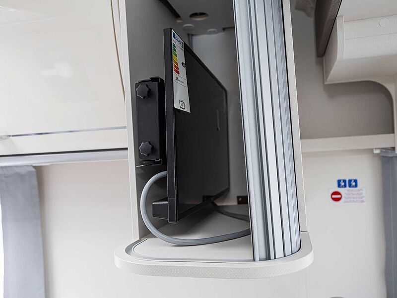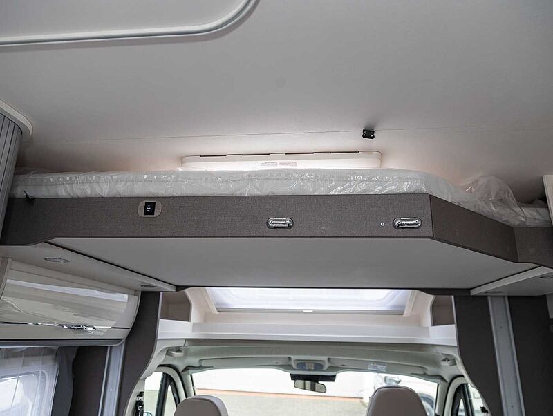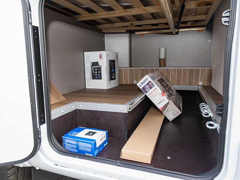 • LED-Wohnraumleuchte • Leistungsstarke, wartungsfreie Aufbaubatterie (95 Ah) • Bord-Control-Panel • Elektrischer Ladeautomat für Aufbau- und Fahrzeugbatterie 12 V | 18 A • CEE-Außenanschluss für 230 V mit Sicherungsautomat