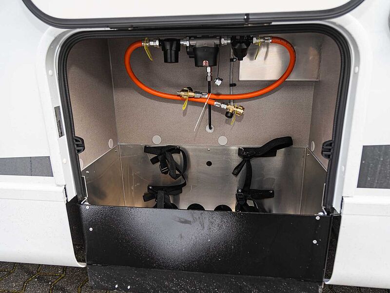 • Stauraum für 2 Gasflaschen mit max. 11 kg Füllgewicht • Combi 6 Gasheizung mit integriertem 10 l Boiler