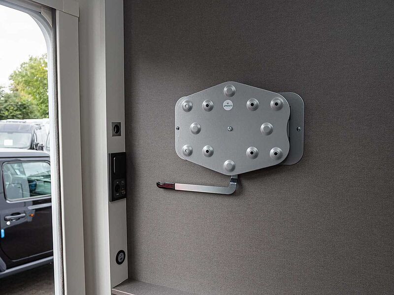 LED-Beleuchtung integriert unter den Dachschränken, LED-Wohnraumleuchte, LED-Außenleuchte, Leistungsstarke, wartungsfreie Aufbaubatterie (95 Ah), Bord-Control-Panel, Elektrischer Ladeautomat für Aufbau- und Fahrzeugbatterie 12 V | 18 A, CEE-Außenanschluss für 230 V mit Sicherungsautomat, FI-Schutzschalter, USB-Steckdosen