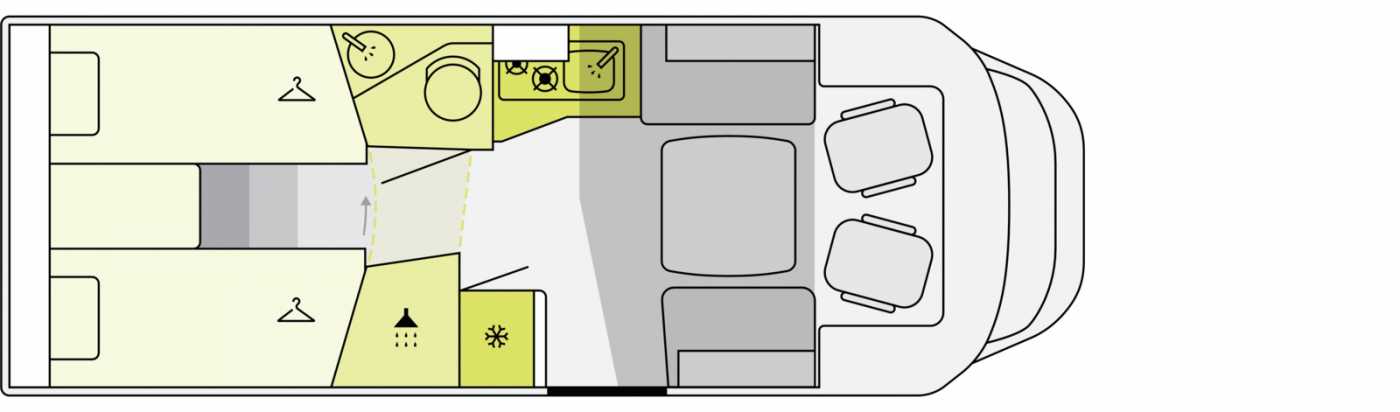 Komfort Paket (2. Außenstauraumklappe (Größe modellabhängig), Fliegengittertür, Garderobenhaken, Steckdose im Küchenblock, Steckdose in der Garage, Holzlattenrost in der Dusche)