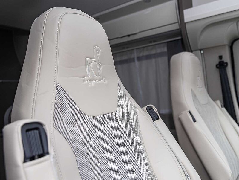 type X Edition Dachschrankklappen-Design in Hochglanz Magnolia ● Textilkombination AOSTA ● Fahrersitze mit besticktem Logo und Type x Schriftzug ● Type X Außendesign in matt