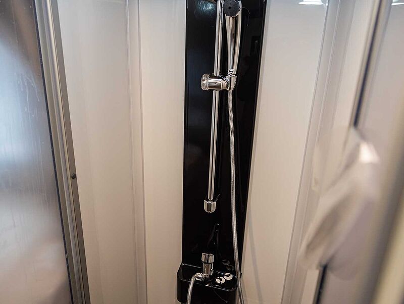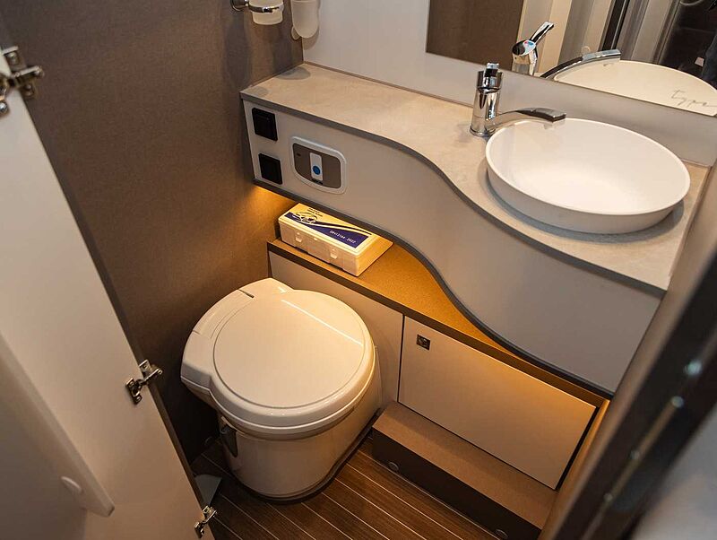BAD • Variobad im T 6900 SB, T 7300 SB, V5900 DB & V6600 SB • Geräumiges Raumbad mit gegenüberliegender separater Dusche im T 6900 DB/QB, T 7400 SB/QB/QBC/SBC • Bad mit Banktoilette und integriertem Duschraum im T 5900 FB • Kassettentoilette mit elektrischer Pumpe und drehbarem Sitz (außer T 5900 FB) • Dachhaube mit integriertem Insektenschutzrollo (modellabhängig) • Große Spiegelflächen • Kleiderstange in der Nasszelle • Flex-Schienensystem mit 2 Haken (außer T 6900 SB, T 7300 SB, A 6600 BB und A 7300 DB)
