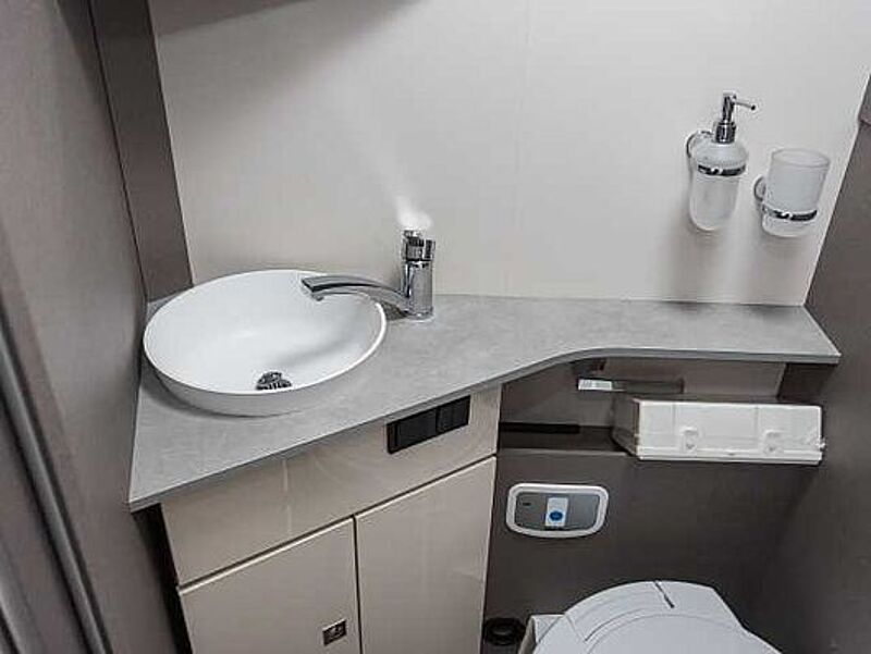 BAD • Variobad im T 6900 SB, T 7300 SB, V5900 DB & V6600 SB • Geräumiges Raumbad mit gegenüberliegender separater Dusche im T 6900 DB/QB, T 7400 SB/QB/QBC/SBC • Bad mit Banktoilette und integriertem Duschraum im T 5900 FB • Kassettentoilette mit elektrischer Pumpe und drehbarem Sitz (außer T 5900 FB) • Dachhaube mit integriertem Insektenschutzrollo (modellabhängig) • Große Spiegelflächen • Kleiderstange in der Nasszelle • Flex-Schienensystem mit 2 Haken (außer T 6900 SB, T 7300 SB, A 6600 BB und A 7300 DB)