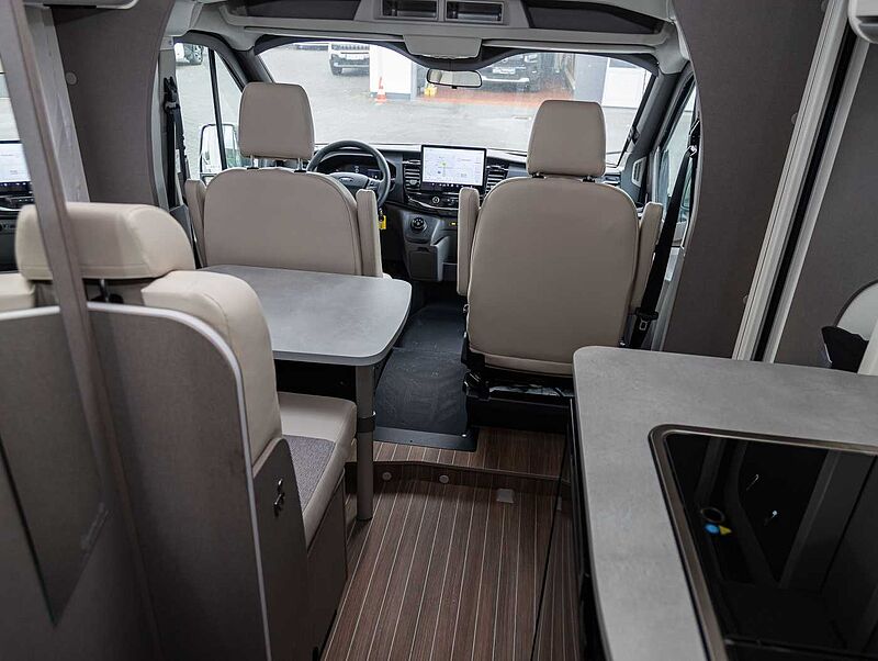 Complete Selection (Chassis Paket, Komfort Paket, Design Paket type X, FORD 16" Alufelgen, schwarz, Fenster in T-Haube, Rahmenfenster, Abwassertank isoliert, Markise (manuell) 3,5 m, Gehäuse in anthrazit, Vorbereitungen für TV Kabel 12V und TV Halterung, Vorbereitung Dachklimaanlage, Vorbereitung Solaranlage, Wohnwelt Emilia)