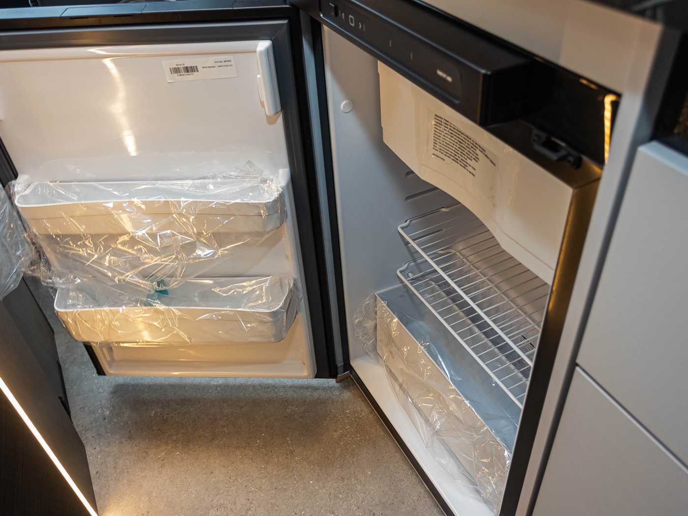 und Glasabdeckung • Geräumige Schubkästen mit Soft-Close im Küchenblock • Kühlschrank 78 l mit Gefrierfach 11 l • Frischwassertankkapazität 110l, Abwassertank 100l (V 5.9 DF: 95l) • Abfalleime
