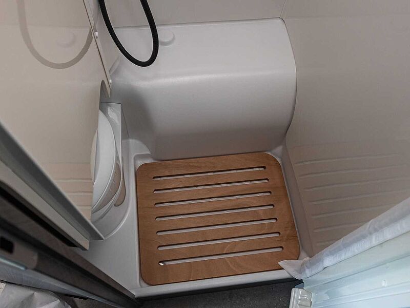 • Variobad • Duschraumverkleidung • Dachhaube mit integriertem Insektenschutzrollo • Große Spiegelflächen • Kleiderstange in der Nasszelle