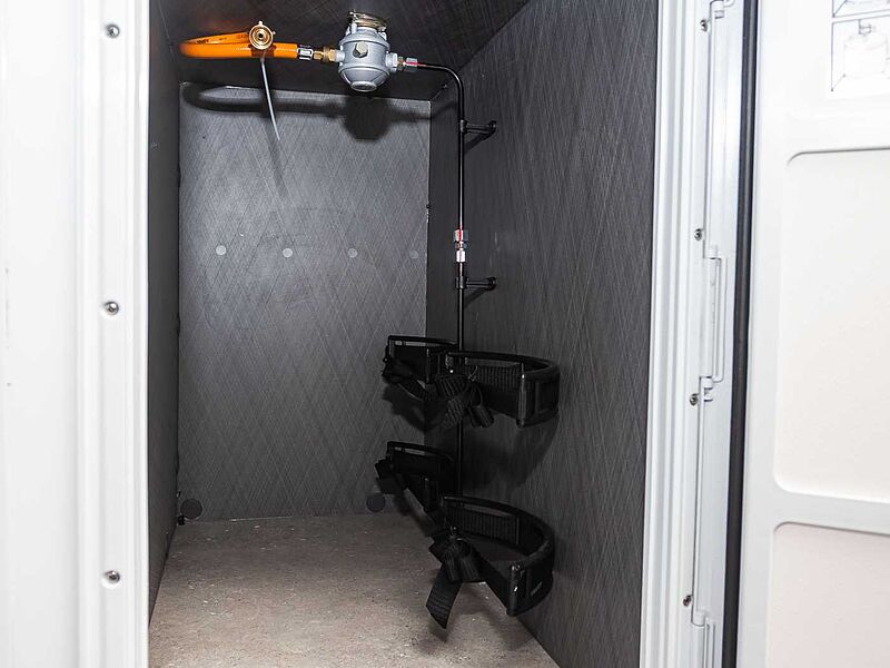 • Stauraum für 2 Gasflaschen mit max. 11 kg Füllgewicht • Combi 4 Gasheizung • Gasabsperrhähne gut zugänglich und zentral angeordnet