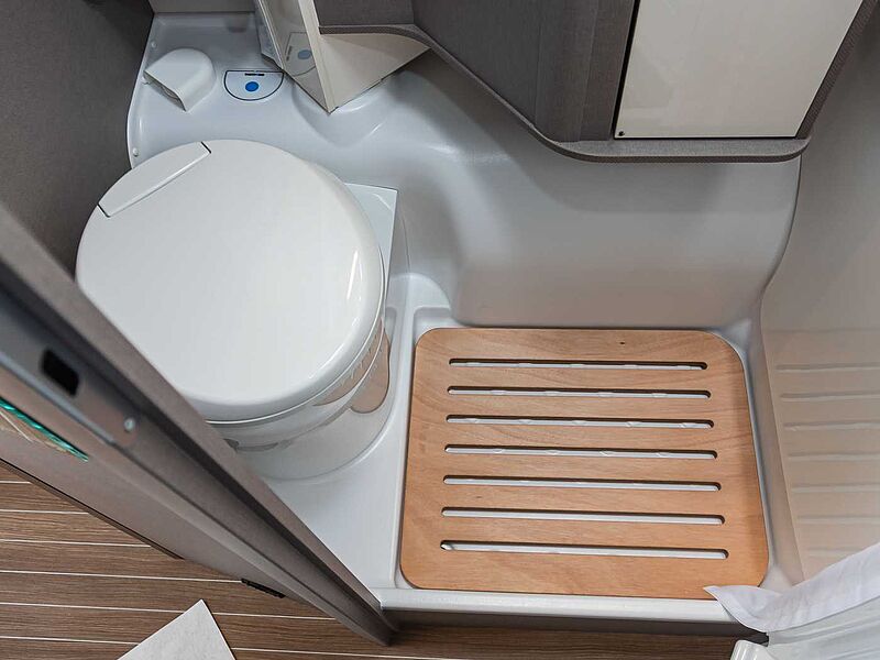 • Variobad • Duschraumverkleidung • Dachhaube mit integriertem Insektenschutzrollo • Große Spiegelflächen • Kleiderstange in der Nasszelle
