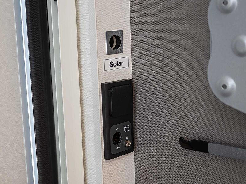 • CEE-Außenanschluss für 230 V mit Sicherungsautomat • FI-Schutzschalter • USB-Steckdosen