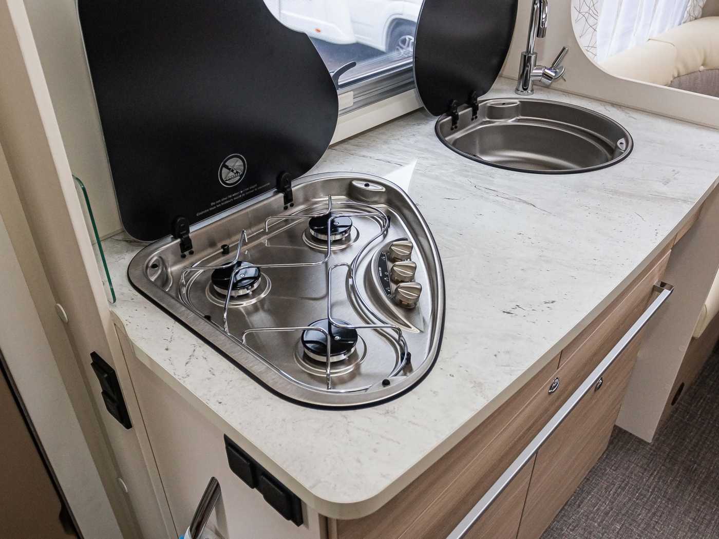 - Sicherheitsgurte und Kopfstützen in Fahrtrichtung im HeckSerieMarkisen
