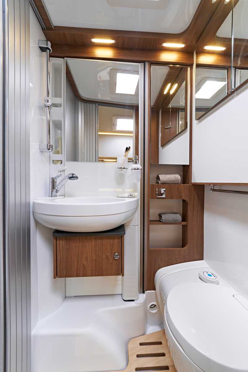 Polyurethan • GFK-Dach • LED-Heckscheinwerfer mit dynamischen Laufblinkern • Doppelboden, beheizt, beleuchtet mit Wärmespeicherfunktion, Beladung von außen und innen, Stauraum und technische Installationen • GFK-Unterboden • Garage mit tiefer Ladefläche, rutschfestem Bodenbelag, beleuchtet, beheizt und Zurrschiene mit variablen Ösen •  Garage mit maximaler Nutzlast 250 kg • Steckdose in der Garage • Beidseitige Garagenklappen mit Gasdruckdämpfern und doppelter Schließanlage mit einheitlicher Steuerung • Sensor offene Garagenklappen • Coupé-Einstieg Elektrische Trittstufe • Sensor elektrische Trittstufe mit Bedienung vom Fahrerhaus • Einstiegshilfe • Premium XL-Aufbautür, mit Fernbedienung, Zentralverriegelung, Fenster, Verdunkelung, Ablagefach und Moskitonetz • Rahmenfenster mit Verdunkelung und Moskitonetz