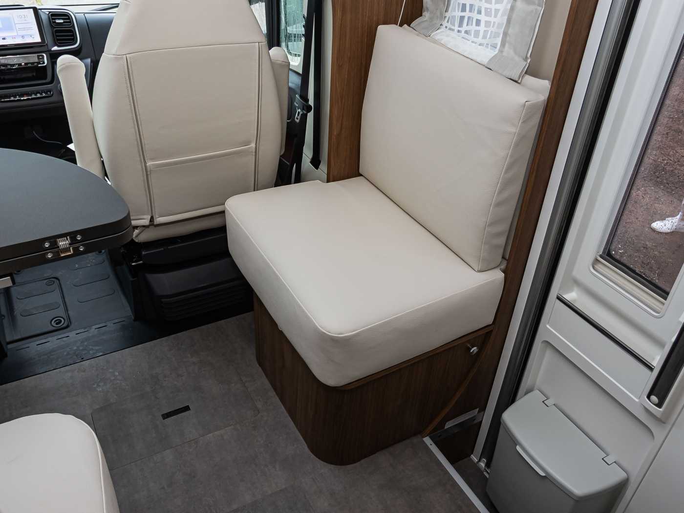 Polyurethan • GFK-Dach • LED-Heckscheinwerfer mit dynamischen Laufblinkern • Doppelboden, beheizt, beleuchtet mit Wärmespeicherfunktion, Beladung von außen und innen, Stauraum und technische Installationen • GFK-Unterboden • Garage mit tiefer Ladefläche, rutschfestem Bodenbelag, beleuchtet, beheizt und Zurrschiene mit variablen Ösen • Garage mit maximaler Nutzlast 250 kg • Steckdose in der Garage • Beidseitige Garagenklappen mit Gasdruckdämpfern und doppelter Schließanlage mit einheitlicher Steuerung • Sensor offene Garagenklappen • Coupé-Einstieg Elektrische Trittstufe • Sensor elektrische Trittstufe mit Bedienung vom Fahrerhaus • Einstiegshilfe • Premium XL-Aufbautür, mit Fernbedienung, Zentralverriegelung, Fenster, Verdunkelung, Ablagefach und Moskitonetz • Rahmenfenster mit Verdunkelung und Moskitonetz