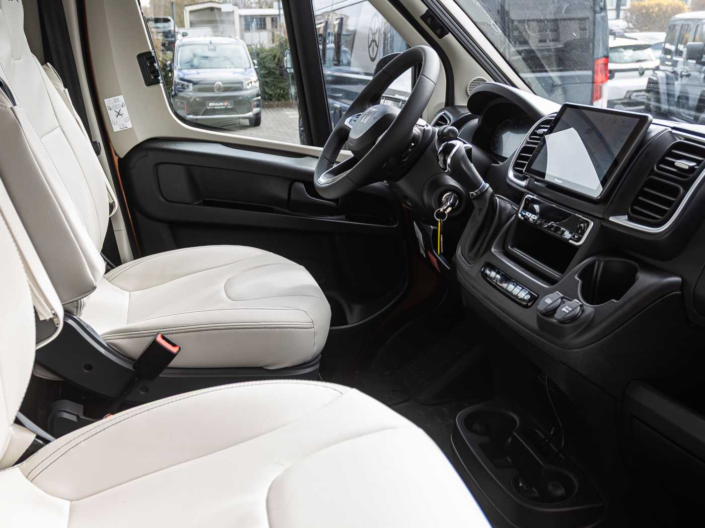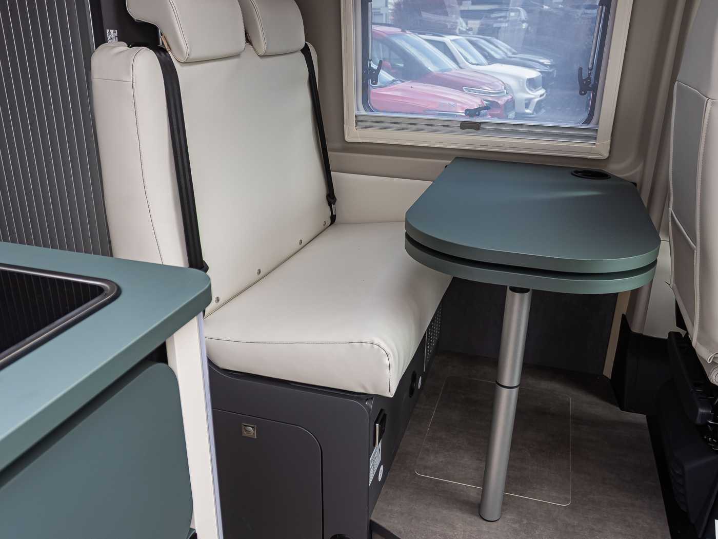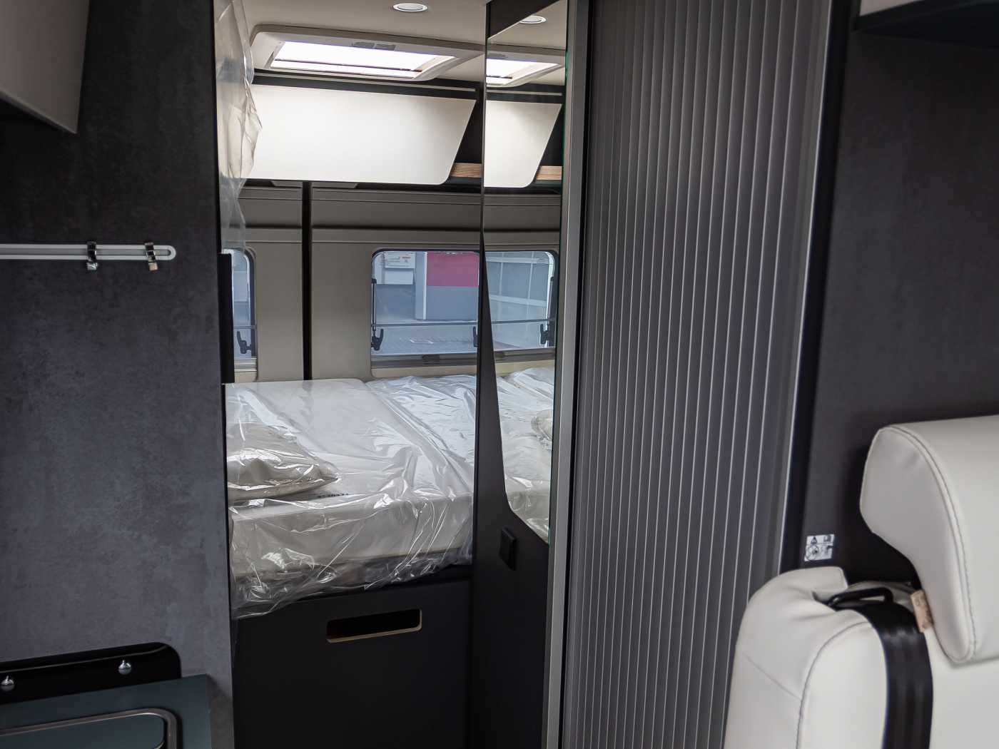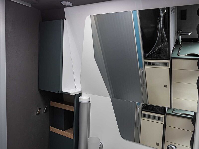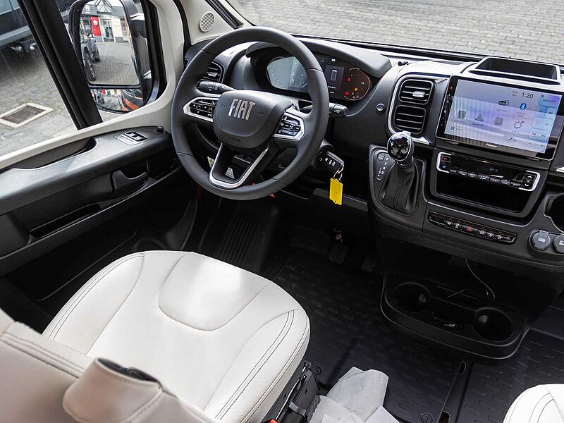 Serienausstattung: Chassis-/GewichtsvariantenFiat Ducato Light 3.500 kg 2.2 180 PS (Light Duty) + AutomatikgetriebeBasisReifenreparaturset Fix & Go60 l KraftstofftankElectronic Stability Control: ESC, ABS, ASR, Hill Holder, Roll Over Mitigation, Crosswind Assist, Trailer Stability Control System, Post Collision Braking SystemTempomatTraction+, Hill Descent ControlAußenspiegel elektrisch verstellbar u. beheizbar, mit integrierten BlinkleuchtenElektrische Fensterheber im FahrerhausFahrer- und BeifahrerairbagHöhenverstellbares LenkradLenkrad und Schaltknauf in EchtlederManuelle Klimaanlage im FahrerhausRadiobedienung am LenkradVorbereitung für DAB-Autoradio und Lautsprecher im FahrerhausAntenne DABEco-Pack mit Start&StopZentralverriegelung Fahrerhaus und WohnraumVorrichtung DieselheizungNebelscheinwerfer mit KurvenlichtInduktive Smartphone-LadestationDigitale Instrumentenanzeige mit 7 TFT-FarbdisplayTPMS (Reifendruckkontrollsystem)Elektrische FeststellbremseFull-LED-ScheinwerferAdaptive Geschwindigkeitsregelanlage (ACC) > 30km/hAutonomer Notbremsassistent mit Fußgänger- und Radfahrererkennung, Spurhalteassistent (Lane Support System), Regen- und Dämmerungssensor, Verkehrszeichenerkennung + FernlichterkennungKlimaautomatik mit PollenfilterChassis-Außenfarbe Mugello Grün18“ Racing-Leichtmetallräder (bronze)AufbauXPS, Boden und Dach, Wände und Dach isoliert mit Alu-EcofiberDoppelbodenstauraum mit Innenbeleuchtung (Sitzgruppe)Panorama-Dachluke 70 × 50 cm im WohnraumDachluke 40 × 40 cm im SchlafzimmerDachluke 28 x 28 cm im BadFenster im BadElektrische Trittstufe (Aufbautür)RahmenfensterAusbauDrehbare Fahrerhaussitze mit Armlehnen, höhenverstellbar, im Wohnraumstoff bezogenMaximierte Innenraumhöhe im Fahrerhaus und über WohnsitzgruppeStaufächer und indirekte Beleuchtung in der T-HaubeKopfstützen Sitzgruppe mit HöhenregulierungGarderobenschrank mit AuszugsschieneOptimierter Möbelbau für Anti-Kondensations-Effekt, Luft- und Wärmezirkulation sowie optimale Wärmeverteilung in Wohn- und SchlafraumWohnraumdecke gepolstert und verkleidetISOFIX (2 Sitzplätze)Ausziehbarer TischHeckstauraum mit vier VerzurrösenHerausnehmbare Trennwand zwischen Wohn- und Laderaum mit Tür für InnenzugangVerdunklungsplissee Fahrerhaus für Front- und SeitenscheibenSchiebetür mit FliegengitterWohn- und Schlafraum & BeleuchtungBetten mit HolzlattenrostVerstellbare Leselampen mit USB-SteckdosenLED BeleuchtungskonzeptKlappbare Heckbetten zur einfachen Beladung von sperrigem GepäckKomfortable "Ergonomy"-Matratzen, Anti-Milben, mit atmungsaktivem Stretch-Futter, waschmaschinenfestIndirekte Beleuchtung, dimmbarSchlafzimmerwände mit Eco-Leder-VerkleidungKücheKüchenoberfläche und Tisch, kratzfest und pflegeleicht (Fenix®)2-Flammen-Kochfeld und Spülbecken aus EdelstahlKompressor-Kühlschrank 84 lKüchenschubladen softclose230 V Steckdose in der KücheIndirekte Beleuchtung unter der KüchenplatteKlappbares Regal in der KücheBadezimmerVariobad mit integrierter abtrennbarer Maxi-DuscheToilette und herausnehmbarer Tank (frostbeständig)Schiebetür zum BadDuscheinlage aus HolzInstallation & TechnikDieselheizung Combi 6 - 6kWHeizung mit digitalem Bedienpanel und ZeitsteuerungAutomatisches Batterieladegerät 22 ABord-Kontrollpanel mit LED-AnzeigeWohnraumbatterie (95 Ah)Stromversorgung und Aufladen mobiler Geräte über USB-SteckerSteckdose in der GarageStauraum für 2 GasflaschenFrischwassertank innenliegend, leicht zugänglich, elektrische TauchpumpeAbwassertank mit SicherheitsventilAbflussrohre mit Siphon und Abwassertank mit externer Entlüftung, gegen GeruchsbildungBeheizter AbwassertankVorbereitung RückfahrkameraLED-Außenleuchte und Raintech-System über SchiebetürAbwassertank, isoliertMultimediaTV-Fach im Wohnraum mit Halbinsel und indirekter BeleuchtungTV-Vorbereitung (Strom- und SAT-Kabel)