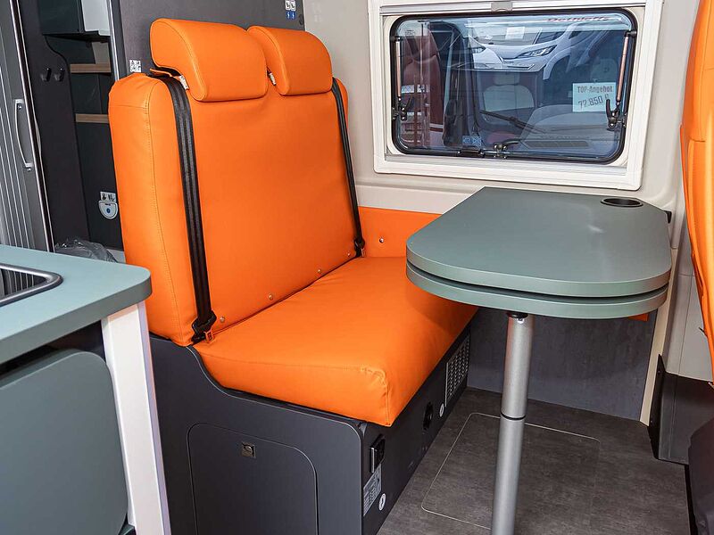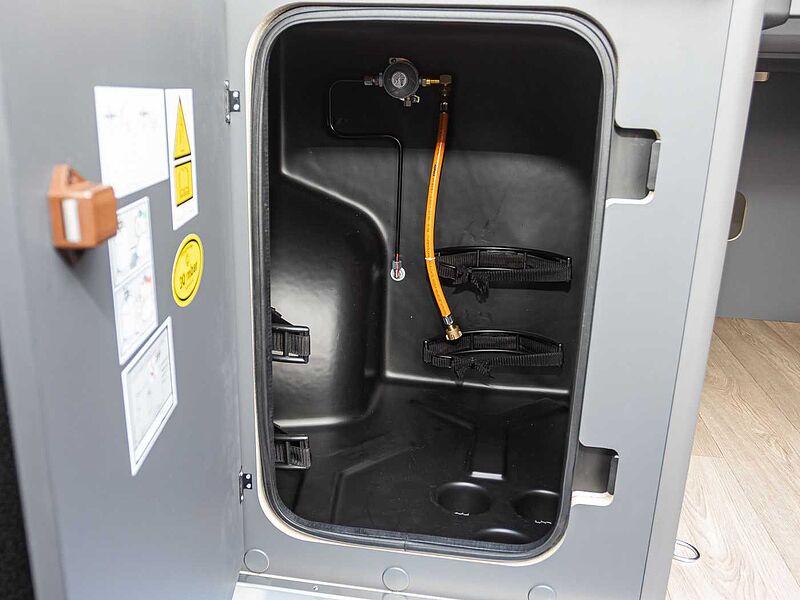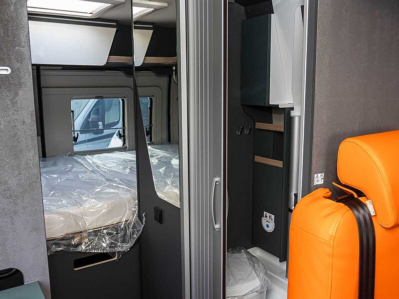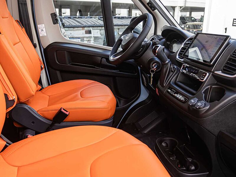 Serienausstattung: Chassis-/GewichtsvariantenFiat Ducato Light 3.500 kg 2.2 180 PS (Light Duty) + AutomatikgetriebeBasisReifenreparaturset Fix & Go60 l KraftstofftankElectronic Stability Control: ESC, ABS, ASR, Hill Holder, Roll Over Mitigation, Crosswind Assist, Trailer Stability Control System, Post Collision Braking SystemTempomatTraction+, Hill Descent ControlAußenspiegel elektrisch verstellbar u. beheizbar, mit integrierten BlinkleuchtenElektrische Fensterheber im FahrerhausFahrer- und BeifahrerairbagHöhenverstellbares LenkradLenkrad und Schaltknauf in EchtlederManuelle Klimaanlage im FahrerhausRadiobedienung am LenkradVorbereitung für DAB-Autoradio und Lautsprecher im FahrerhausAntenne DABEco-Pack mit Start&StopZentralverriegelung Fahrerhaus und WohnraumVorrichtung DieselheizungNebelscheinwerfer mit KurvenlichtInduktive Smartphone-LadestationDigitale Instrumentenanzeige mit 7 TFT-FarbdisplayTPMS (Reifendruckkontrollsystem)Elektrische FeststellbremseFull-LED-ScheinwerferAdaptive Geschwindigkeitsregelanlage (ACC) > 30km/hAutonomer Notbremsassistent mit Fußgänger- und Radfahrererkennung, Spurhalteassistent (Lane Support System), Regen- und Dämmerungssensor, Verkehrszeichenerkennung + FernlichterkennungKlimaautomatik mit PollenfilterChassis-Außenfarbe Mugello Grün18“ Racing-Leichtmetallräder (bronze)AufbauXPS, Boden und Dach, Wände und Dach isoliert mit Alu-EcofiberDoppelbodenstauraum mit Innenbeleuchtung (Sitzgruppe)Panorama-Dachluke 70 × 50 cm im WohnraumDachluke 40 × 40 cm im SchlafzimmerDachluke 28 x 28 cm im BadFenster im BadElektrische Trittstufe (Aufbautür)RahmenfensterAusbauDrehbare Fahrerhaussitze mit Armlehnen, höhenverstellbar, im Wohnraumstoff bezogenMaximierte Innenraumhöhe im Fahrerhaus und über WohnsitzgruppeStaufächer und indirekte Beleuchtung in der T-HaubeKopfstützen Sitzgruppe mit HöhenregulierungGarderobenschrank mit AuszugsschieneOptimierter Möbelbau für Anti-Kondensations-Effekt, Luft- und Wärmezirkulation sowie optimale Wärmeverteilung in Wohn- und SchlafraumWohnraumdecke gepolstert und verkleidetISOFIX (2 Sitzplätze)Ausziehbarer TischHeckstauraum mit vier VerzurrösenHerausnehmbare Trennwand zwischen Wohn- und Laderaum mit Tür für InnenzugangVerdunklungsplissee Fahrerhaus für Front- und SeitenscheibenSchiebetür mit FliegengitterWohn- und Schlafraum & BeleuchtungBetten mit HolzlattenrostVerstellbare Leselampen mit USB-SteckdosenLED BeleuchtungskonzeptKlappbare Heckbetten zur einfachen Beladung von sperrigem GepäckKomfortable "Ergonomy"-Matratzen, Anti-Milben, mit atmungsaktivem Stretch-Futter, waschmaschinenfestIndirekte Beleuchtung, dimmbarSchlafzimmerwände mit Eco-Leder-VerkleidungKücheKüchenoberfläche und Tisch, kratzfest und pflegeleicht (Fenix®)2-Flammen-Kochfeld und Spülbecken aus EdelstahlKompressor-Kühlschrank 84 lKüchenschubladen softclose230 V Steckdose in der KücheIndirekte Beleuchtung unter der KüchenplatteKlappbares Regal in der KücheBadezimmerVariobad mit integrierter abtrennbarer Maxi-DuscheToilette und herausnehmbarer Tank (frostbeständig)Schiebetür zum BadDuscheinlage aus HolzInstallation & TechnikDieselheizung Combi 6 - 6kWHeizung mit digitalem Bedienpanel und ZeitsteuerungAutomatisches Batterieladegerät 22 ABord-Kontrollpanel mit LED-AnzeigeWohnraumbatterie (95 Ah)Stromversorgung und Aufladen mobiler Geräte über USB-SteckerSteckdose in der GarageStauraum für 2 GasflaschenFrischwassertank innenliegend, leicht zugänglich, elektrische TauchpumpeAbwassertank mit SicherheitsventilAbflussrohre mit Siphon und Abwassertank mit externer Entlüftung, gegen GeruchsbildungBeheizter AbwassertankVorbereitung RückfahrkameraLED-Außenleuchte und Raintech-System über SchiebetürAbwassertank, isoliertMultimediaTV-Fach im Wohnraum mit Halbinsel und indirekter BeleuchtungTV-Vorbereitung (Strom- und SAT-Kabel)