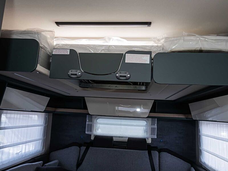 Technik: • LED Beleuchtungskonzept • Verstellbare Leselampen mit USB Steckdosen • Nachtbeleuchtung an allen Stufen • Gasheizung Combi, mit Wärmeverteilung im gesamten Wohnmobil, einschl. Garage und Fahrerhaus • Heizung mit digitalem Bedienpanel und Zeitsteuerung • Bord-Kontrollpanel mit LED-Anzeige • Automatisches Batterieladegerät 20 A • Wohnraumbatterie (95 Ah) • Stromversorgung und Aufladen mobiler Geräte über USB-Stecker • Stauraum für 2 Gasflaschen • Frischwassertank innenliegend, leicht zugänglich, elektrische Tauchpumpe • Abwassertank mit Sicherheitsventil • Abflussrohre mit Siphon und Abwassertank mit externer Entlüftung, gegen Geruchsbildung
