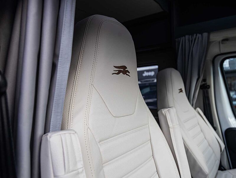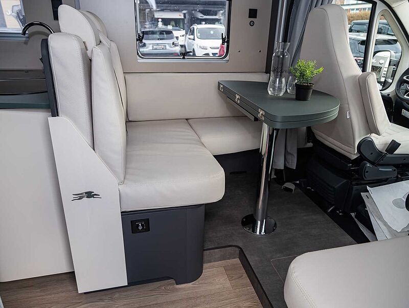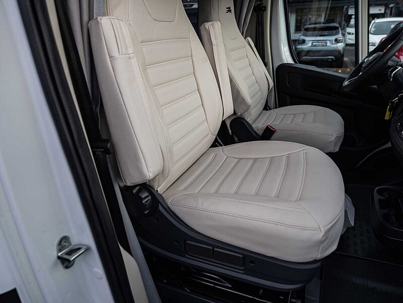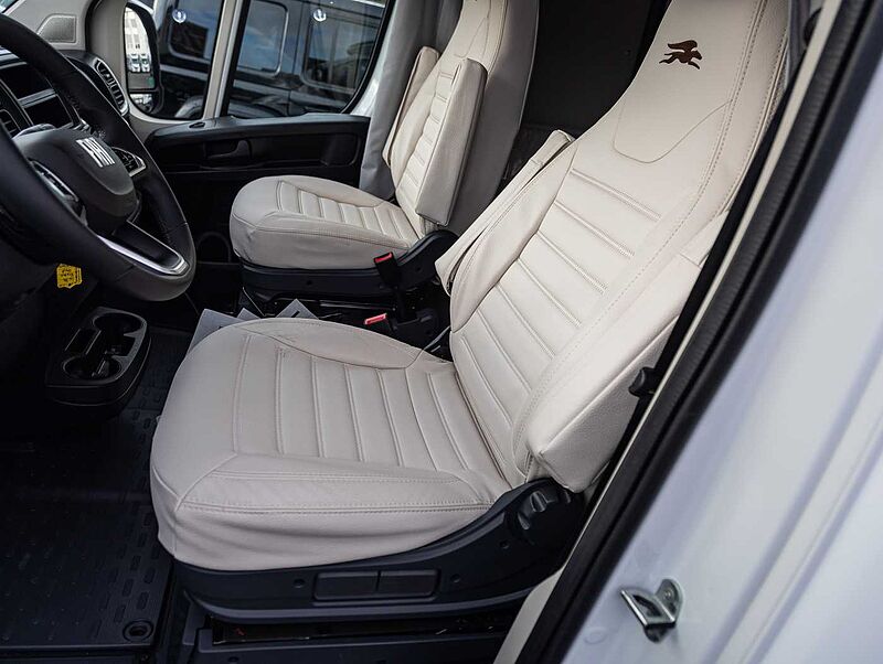 CHASSIS • Fiat Ducato, 140 PS, Turbo Diesel Common Rail • Spurverbreitung Hinterachse • Stahlfelgen 16' • Reifenreparaturset Fix & Go • 60 l Kraftstofftank • Electronic Stability Control: ESC, ABS, ASR, Hill Holder, Roll Over Mitigation, Crosswind Assist, Trailer Stability Control System, Post Collision Braking System • Tempomat • Eco-Pack mit Start&Stop • Manuelle Klimaanlage im Fahrerhaus • Fahrer- und Beifahrerairbag • Höhenverstellbares Lenkrad AUFBAU: XPS-Wärmedämmung • Alu-Wände • GFK-Dach • LED-Rückleuchten • GFK-Unterboden • Seitenschürzen aus ABS • Garage mit tiefer Ladefläche, rutschfestem Bodenbelag, beleuchtet, beheizt und Zurrschiene mit variablen Ösen • Garage mit maximaler Nutzlast 150 kg je nach Konfiguration und effektiver Beladung bei Nutzung • Steckdose in der Garage • Beidseitige Garagenklappen • Coupé-Einstieg • Einstiegshilfe • Aufbautür mit Fenster und Verdunkelung • Rahmenfenster mit Verdunkelung und Moskitonetz • LED-Außenbeleuchtung • Gasstauraum, tiefe Ladekante, leicht zugänglich Technik: • LED Beleuchtungskonzept • Verstellbare Leselampen mit USBSteckdosen • Nachtbeleuchtung an allen Stufen • Gasheizung Combi, mit Wärmeverteilung im gesamten Wohnmobil, einschl. Garage und Fahrerhaus • Heizung mit digitalem Bedienpanel und Zeitsteuerung • Bord-Kontrollpanel mit LED-Anzeige • Automatisches Batterieladegerät 20 A • Wohnraumbatterie (95 Ah) • Stromversorgung und Aufladen mobiler Geräte über USB-Stecker • Stauraum für 2 Gasflaschen • Frischwassertank innenliegend, leicht zugänglich, elektrische Tauchpumpe • Abwassertank mit Sicherheitsventil • Abflussrohre mit Siphon und Abwassertank mit externer Entlüftung, gegen Geruchsbildung KÜCHE / WASSERVERSORGUNG: • Küchenoberfläche und Tisch, kratzfest und pflegeleicht (Fenix®) • Indirekte Beleuchtung unter der Küchenplatte • Spülbecken aus Edelstahl • 2 oder 3-Flammen-Kochfeld (je nach Modell) • Kühlschrank mit automatischer Wahl der Energiequelle (AES) • Küchenschubladen softclose • 230 V Steckdose in der Küche • Küchen- und Sitzgruppenfenster mit Rahmenverkleidung • Spritzschutz in der Küche • Dachluke 40 × 40 cm, Küche • Küchen- und Badarmatur aus Metall Sehr gerne bieten wir Ihnen auch jegliche Nachrüstungen von Zubehör in unserer eigenen Wohnmobil-Werkstatt an. Dies sind z. B.:, Solaranlagen, Klimaanlagen, Navigationssysteme, Rückfahrkameras, Anhängerkupplungen, Wechselrichter, LifePo Batterien, Hubstützanlagen, SOG, Duo Control, TV, Satanlagen, Markisen, und vieles mehr. Sprechen Sie uns einfach an und wir erstellen mit Ihnen zusammen Ihr Wunschfahrzeug. Zwischenverkauf und Irrtümer für dieses Angebot sind ausdrücklich vorbehalten. Ausschlaggebend sind einzig und allein die Vereinbarungen in der Auftragsbestätigung oder im Kaufvertrag.