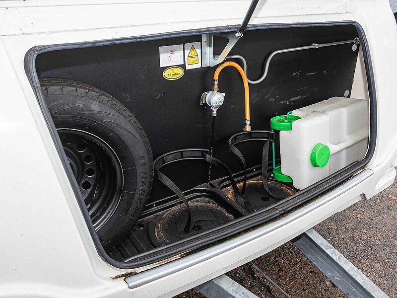 Edelstahl-Spülbecken und 3Flammenkocher Frischwassertank 50L LED-Beleuchtung Gewürzbord Kühlschrank 85L